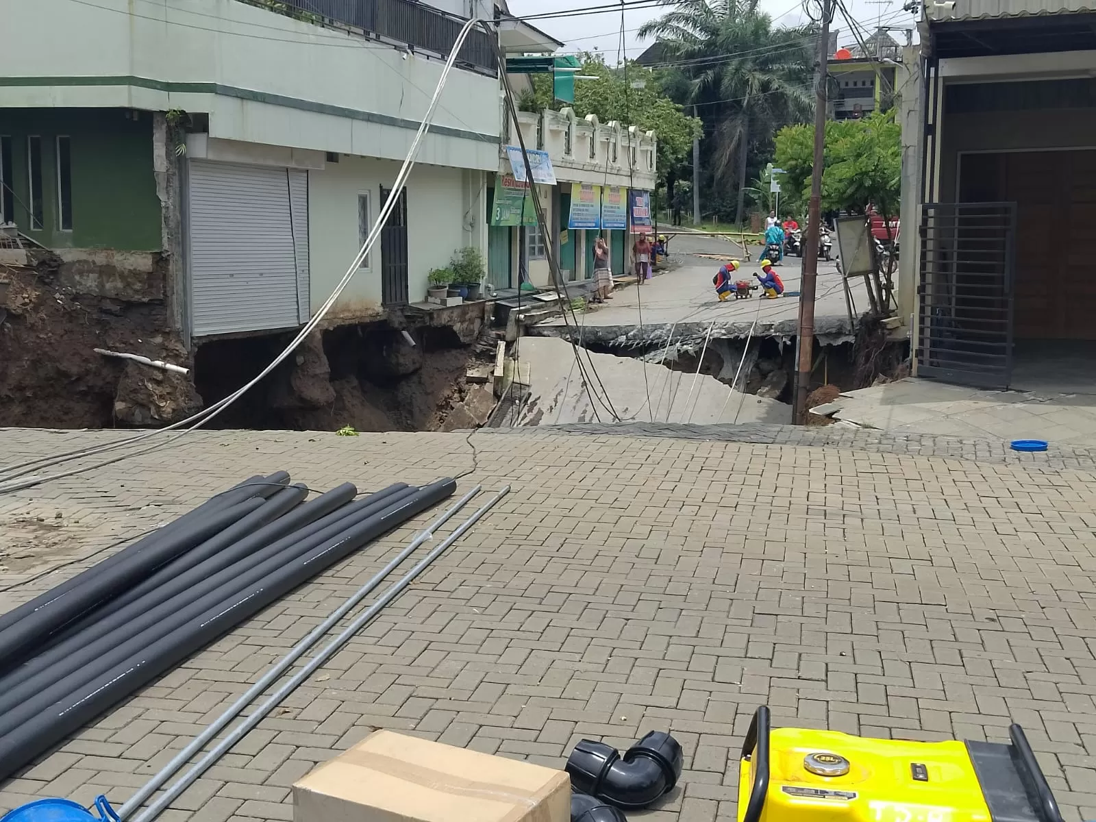 EMARANG, kabarnusa.id– Akibat cuaca ekstrem di Kota Semarang beberapa hari ini terjadi, menyebabkan jalan di dalam Perumahan Permata Puri, Kecamatan Ngaliyan, Kota Semarang ambles, hingga lebih kurang 15 meter panjangnya.