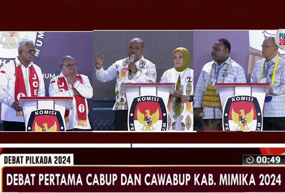Kabarnusa.id – Mimika | Debat paslon Pilkada Mimika yang digelar Rabu (23/10?2024) melahirkan beberapa catatan penting. Paslon Johannes Rettob – Emanuel Kemong, Maximus Tipagau – Peggi, Alex – Yusuf Rombe memaparkan visi misi di hadapan publik dan panelis dari kalangan akademisi dan professional.