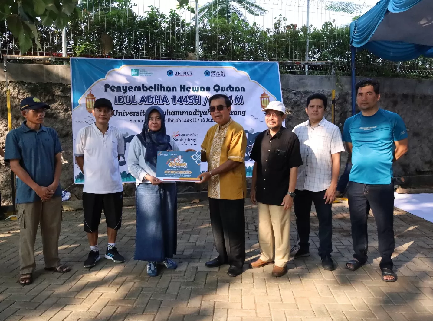 Dalam pembukaan kegiatan penyembelihan dibuka oleh Rektor Unimus, Prof. Dr. Masrukhi, M.Pd didampingi oleh Wakil Rektor I Prof. Dr. Budi Santosa, M.Si.,Med, Wakil Rektor II Dr. Hardiwinoto, M.Si, Wakil Rektor IV M. Yusuf, Ph.D, Kepala LSIK dan MKU Dr. Rochdi Warsono, M.Si serta panitia penyembelihan Hewan Kurban Unimus serta kepala Bank Rekanan (BSI dan Bank Jateng Syariah).