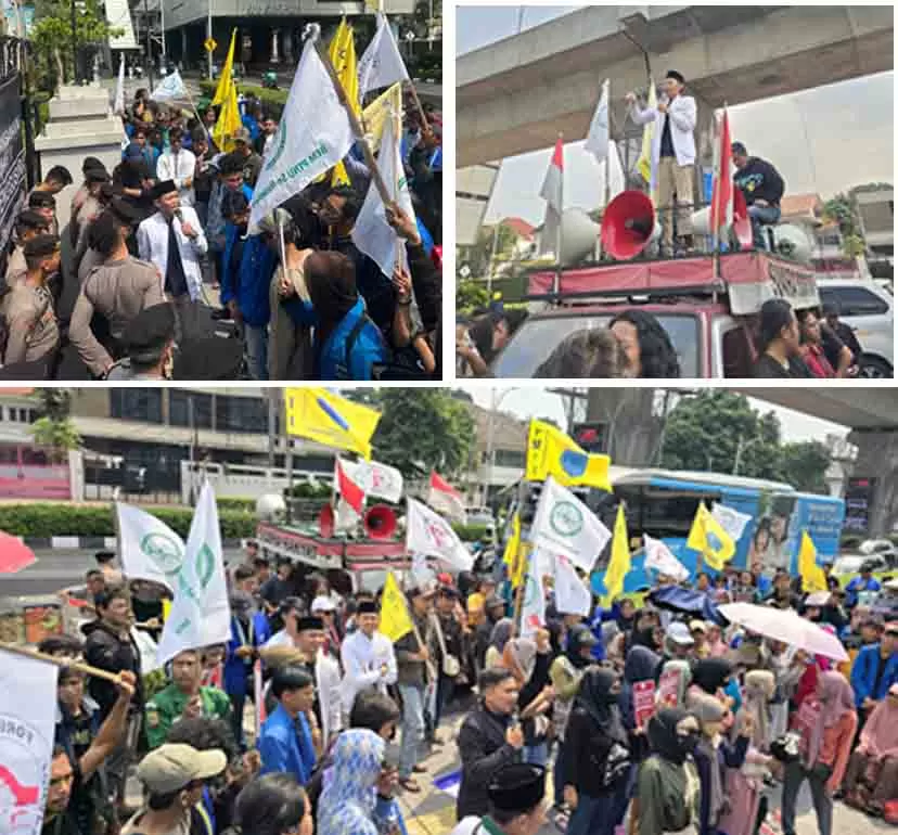 Jakarta – Kabarnusa | Badan Eksekutif Mahasiswa Perguruan Tinggi Nahdlatul Ulama Se-Nusantara (BEM PTNU se Nusantara) yang dipimpin oleh Presidiun Nasional Achmad Baha’ur Rifqi bersama ratusan masyarakat kampung Pilar, Fowapti (forum warga pilar tertindas), PC PMII kota Bekasi, PC PMII Kabupaten Bekasi, melakukan aksi demontrasi yang dilaksanakan di depan gedung Kementrian Agraria dan Tata Ruang Badan Pertanahan Nasional pada, senin 29/7/2024.
