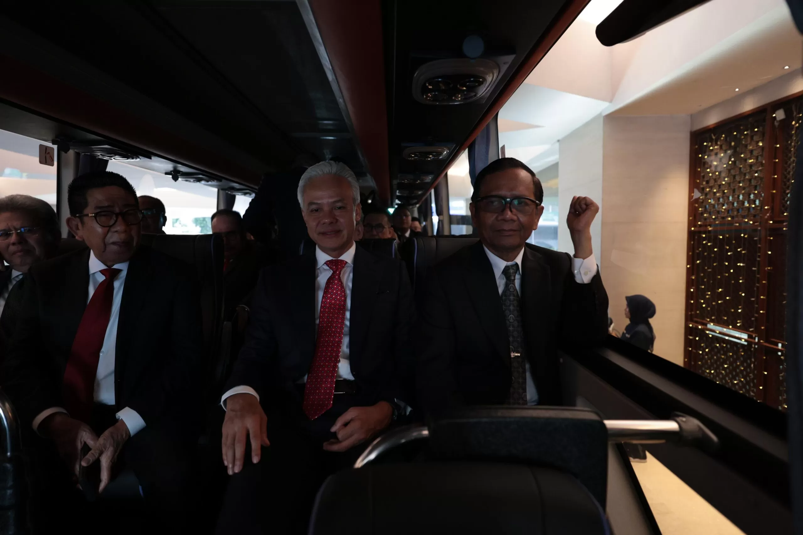 Ganjar-Mahfud hadir untuk mendengar putusan majelis hakim MK dalam sidang gugatan Pilpres 2024.
