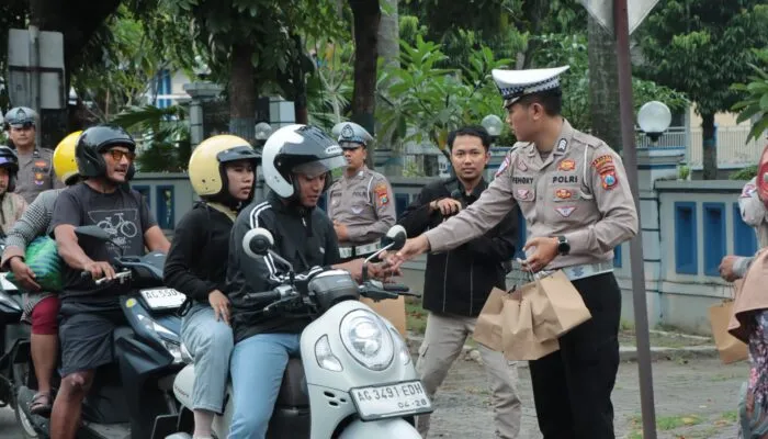 Personel Polres Nganjuk tampak antusias membagikan takjil kepada setiap pengguna jalan yang melintas, menciptakan suasana kebersamaan dan kepedulian. Para penerima takjil menyambut baik aksi sosial ini dan mengapresiasi inisiatif Polres Nganjuk.
